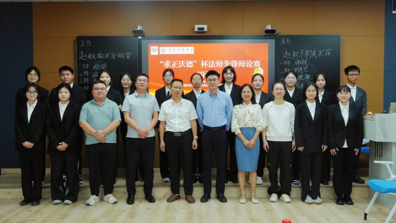 本网讯:10月19日下午,由我校与江西求正沃德(赣州)律师事务所联合主办的“求正沃德”杯法辩先锋辩论赛四强赛在校园内顺利举行。作为赛事冲刺阶段的关键环节,本场比赛以“真实案例辩法理、实战交锋定排位”为核心,在激烈思辨中确定冠亚军、季殿军的最终争夺对阵,同时持续深化校所协同育人,为法学实践教育注入鲜活动能。