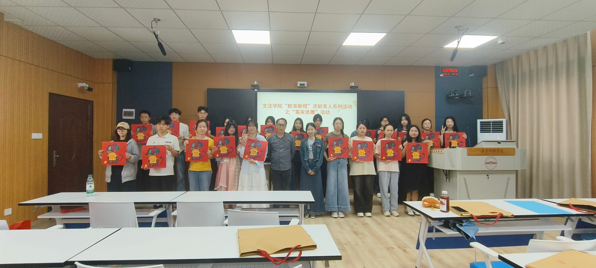 本网讯:为深入贯彻“资助育人”工作理念,创新家庭经济困难学生培养模式,文法学院本学期精心打造“客家纸雕”特色资助育人项目,将非遗文化传承与资助育人工作有机融合。5月13日,该项目在嵩善楼Z628智慧教室圆满结课,22名受助学生通过八周的系统学习,不仅掌握了传统纸雕技艺,更在劳动实践中培养了工匠精神和文化自信。